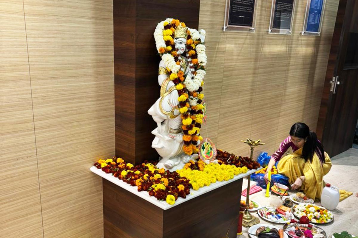 The celebration commenced with the ceremonial worship of Goddess Saraswati, in which students and faculty members participated with great reverence and enthusiasm. The campus was beautifully adorned, creating a spiritually uplifting and serene atmosphere filled with devotion, positivity, and festive spirit.